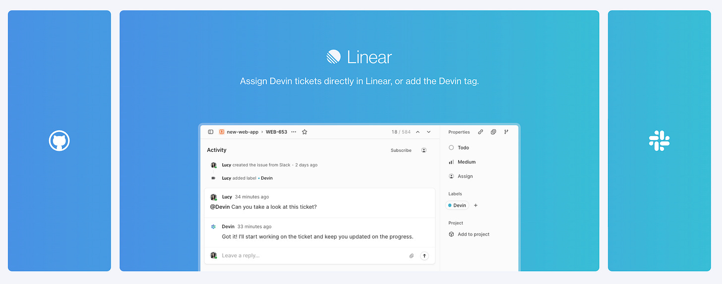 Dan Shipper said, “Working with Devin is familiar because it feels like adding a few junior engineers to your team. You toss them tasks, and they’ll get started with enthusiasm . . . It’s programming leverage—it’s productivity power.” Here’s Dan’s chat with Scott Wu comparing Devin to Claude Code.