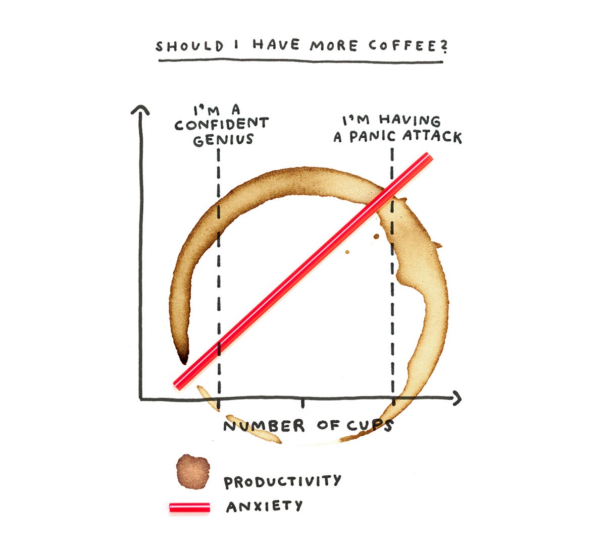 Caffeine can be amazing for creativity . . . until it isnât. Try not to fall into the trap of squandering your mental alertness on a pile of emails that only needed a simple âsounds good!â What happens then is we donât make any progress on the juicy stuff, we feel defeated, and we reach for another cup. And then . . .