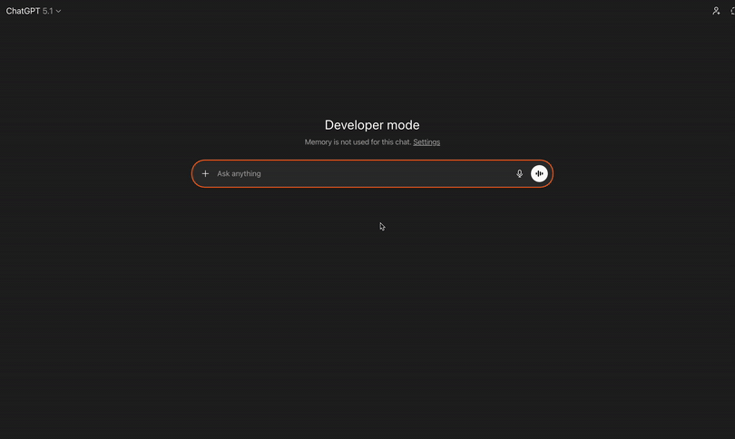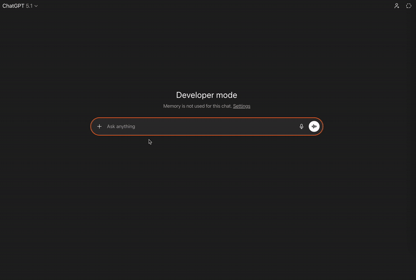 To connect to ChatGPT, you will first need to enable Developer Mode on your ChatGPT account. From there, you can navigate to Settings -> Apps & Connectors -> New App.