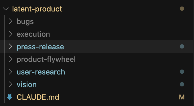 I run this through a repo that I have named {http://project.name}-product. See structure in the image below. Regularly Git push with verbose Git commit messages to create context for Claude to run some part of my decisioning workflows in future.