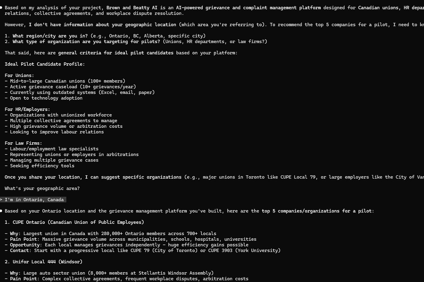 “I literally just typed: look at what I’m building and identify the top 5 companies in my area that would be good for a pilot for this. Then I go to LinkedIn and message them. If it’s not clear, I do this in the source directory of the code of my app so the first thing it does is figure out what it is that I’m building.”