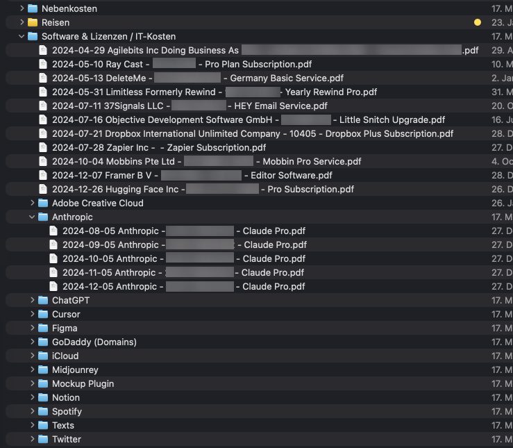 “I use Claude Code to sort my invoices for taxes. It reads each file in a messy folder, renames it to ‘YYYY-MM-DD Vendor - Invoice - ProductOrService.pdf’, and moves it into the right folder.”