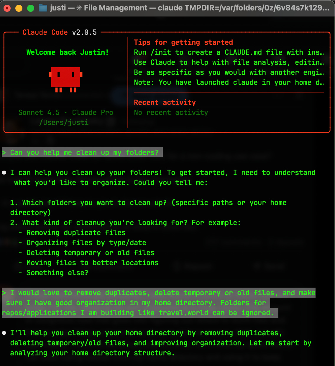 “For me, staying organized is a huge chore. The cognitive load of figuring out where to store files and keeping everything clean and up to date was insane. My hack: I run Claude Code from my home directory and use it as my personal organization assistant. I’ll ask it things like: