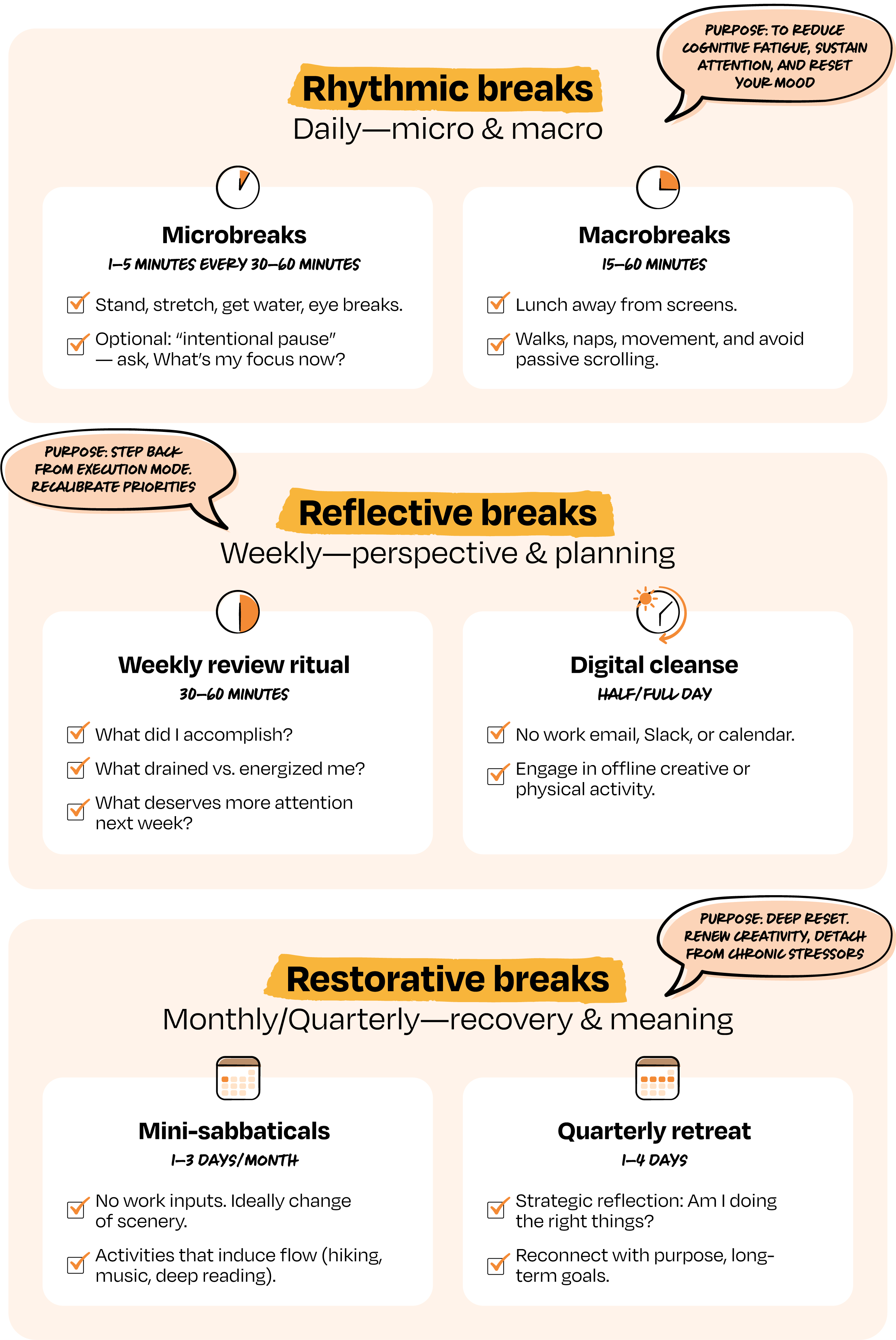 3. Take real breaks: rhythmic, reflective, restorative