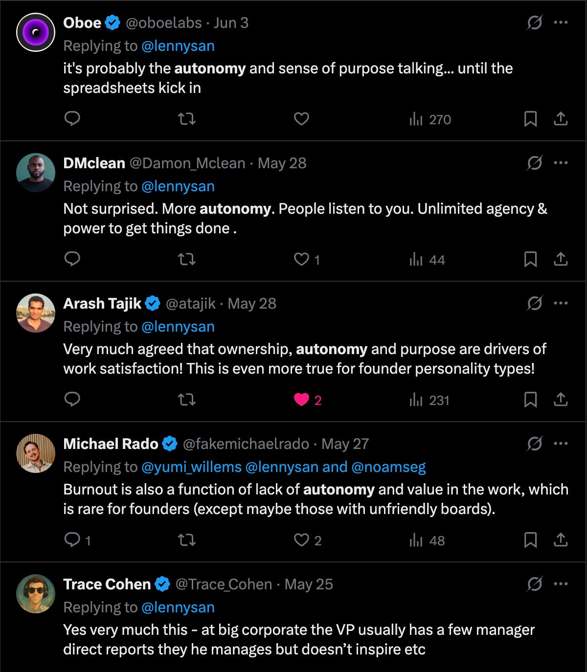Many people we heard from immediately identified that autonomy is a critical ingredient to being happy at work.
