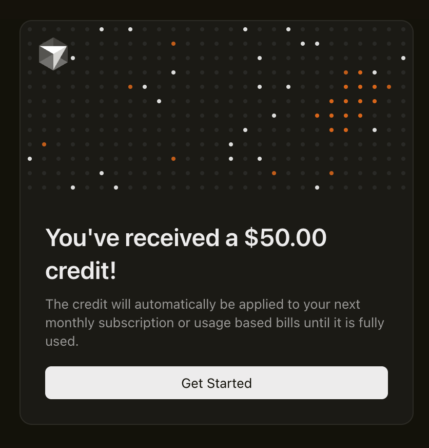4. Click “Get Started” to apply the credits to your account. [Credits can be redeemed with both free and paid accounts.]