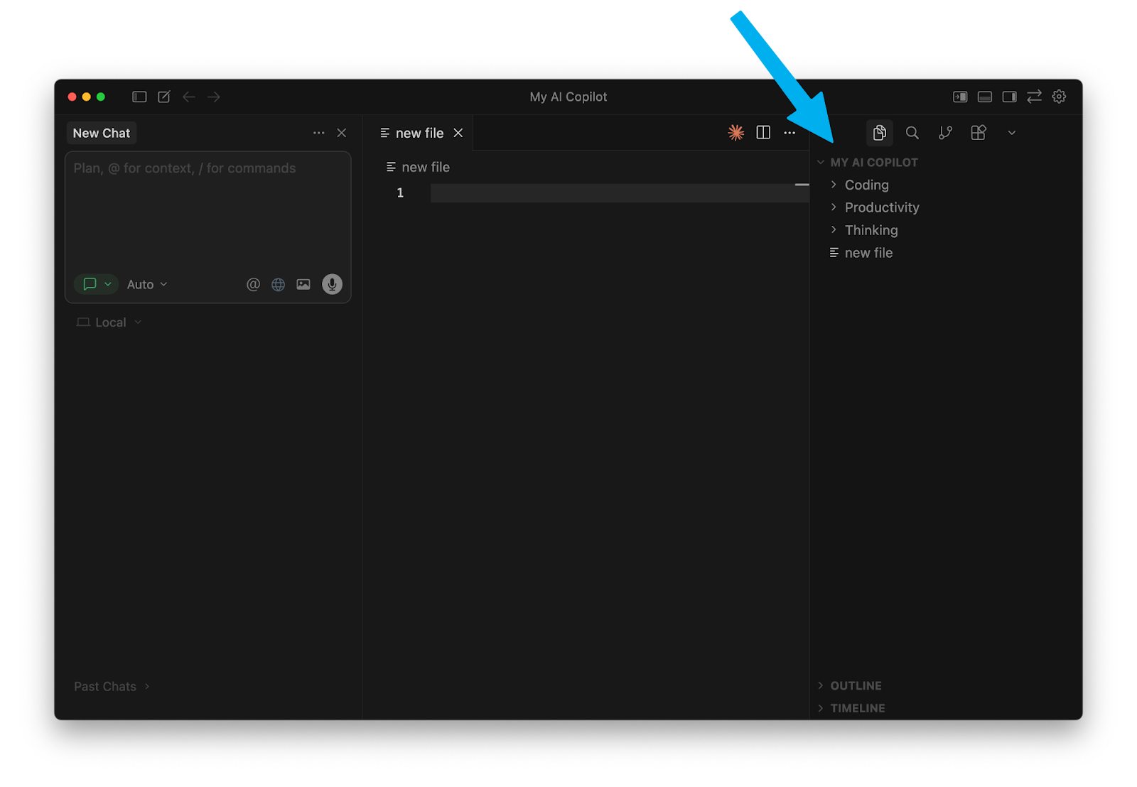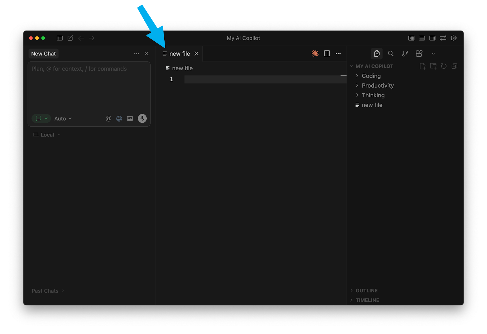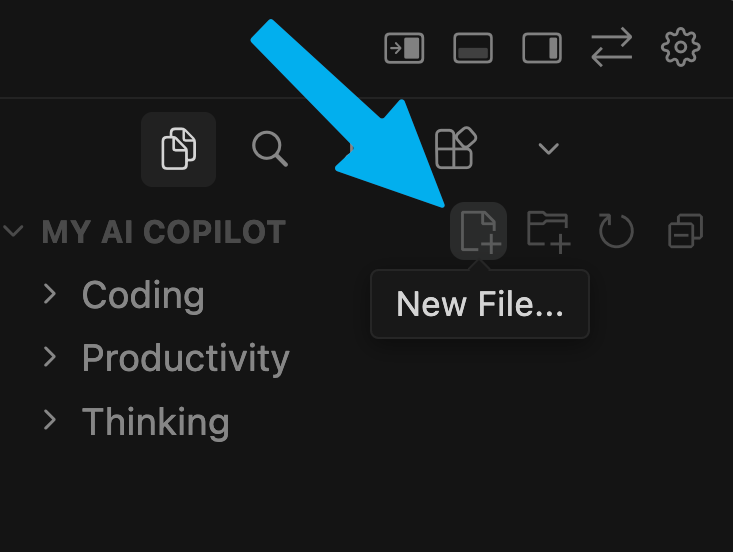 We’ll start by creating a new blank file in Cursor. Hover your mouse in the file explorer, and click the “New File” button: