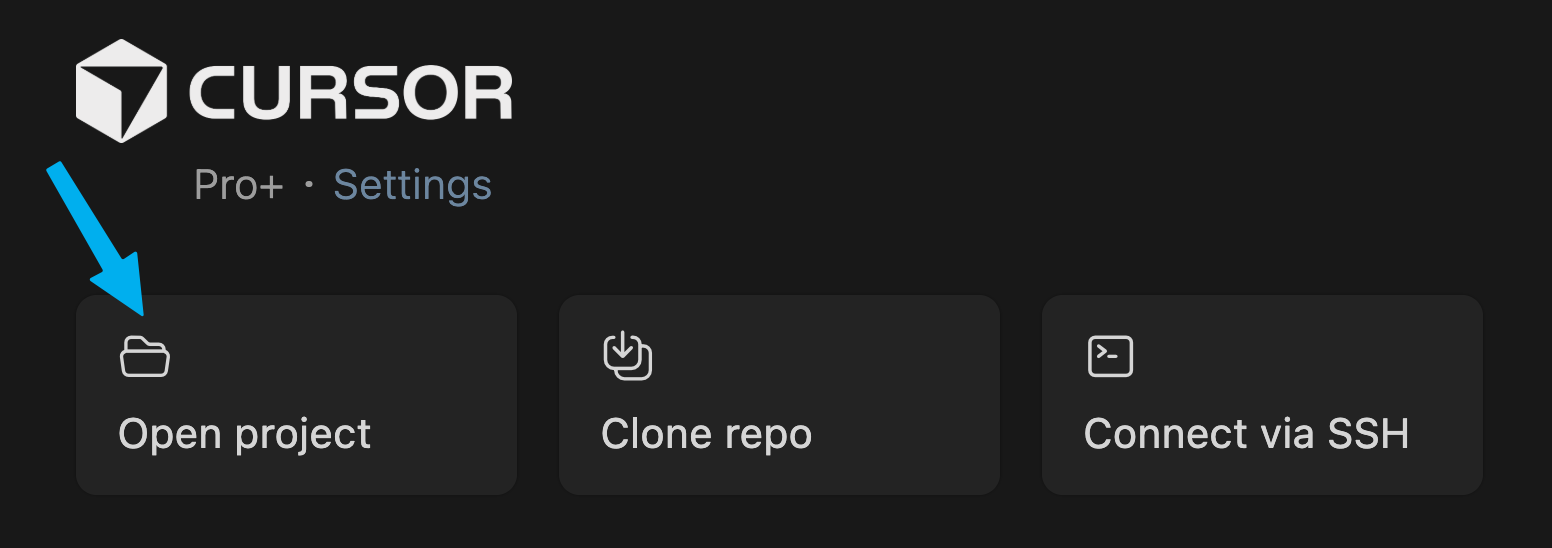 Open Cursor, sign up, power through the onboarding flow, and click “Open project.”