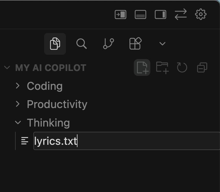 The file explorer shows all the files and folders in your project. This is the same as Finder on a Mac or File Explorer on Windows, and it may be on the right or left of Cursor depending on the latest version. To expand it, you might have to click the small icon at the top of the window to make it visible. (You can always use Ctrl + B on Windows or Cmd + B on a Mac.)
