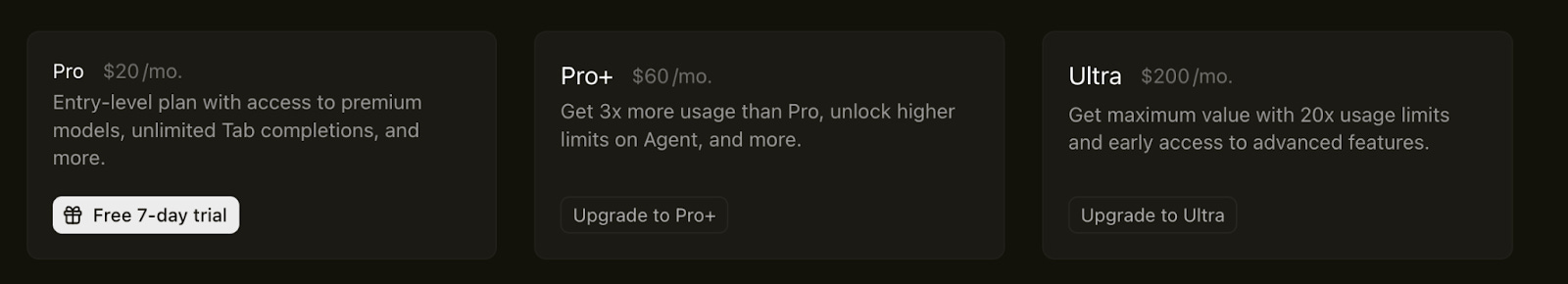 1. Visit Cursor.com/dashboard and sign up for an account.