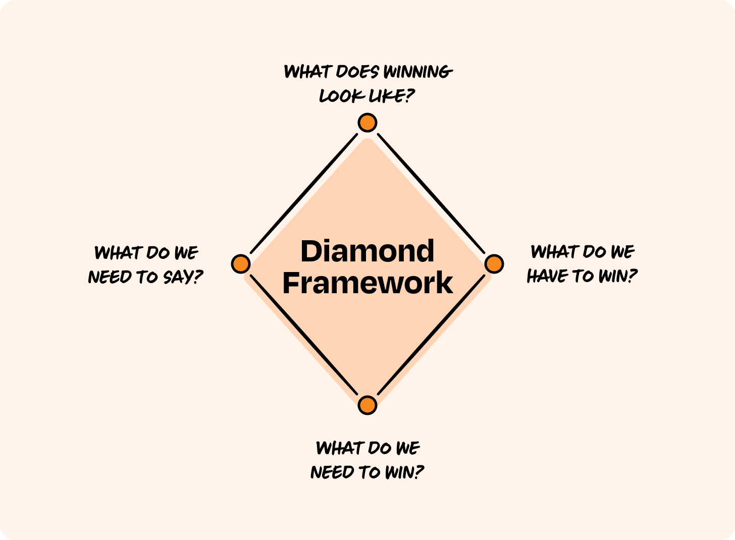 We use a framework called the Diamond Framework to force clarity on business, marketing, and naming strategy. At the start of any project, we ask: