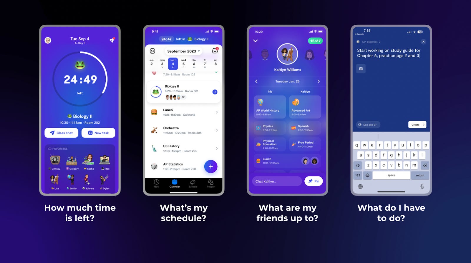 We wanted the experience of joining your school to be magical regardless of our scale. Even today, you arrive, add your classes, and everything is reflected perfectly. It leaves you with a “how did they do that?” feeling. The calendar is what feels the most familiar—it’s your daily schedule, after all. The app is still colorized for your school, and you’re greeted on arrival with your school mascot and friends’ avatars. Delight always matters.