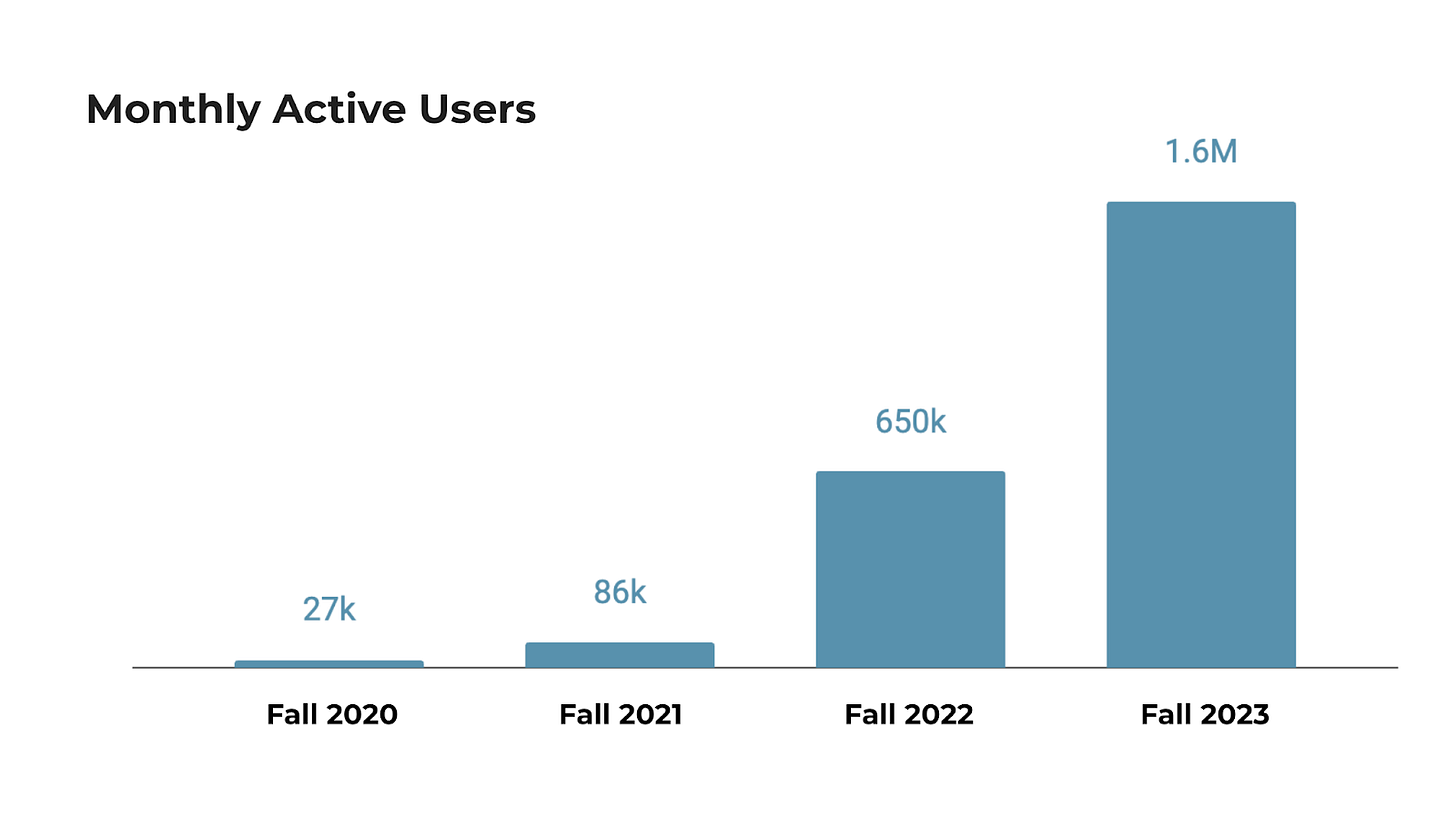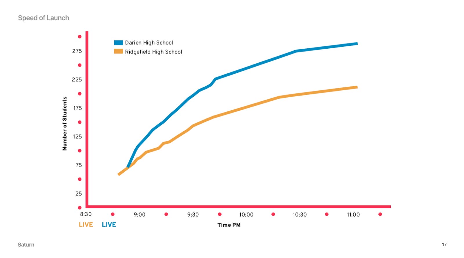 By virtue of this product and growth strategy, we came to market with an experience that was unusually perfectly fit to the audience of a specific school. This translated into incredibly fast adoption at schools. It was common to win a critical mass at schools in hours: