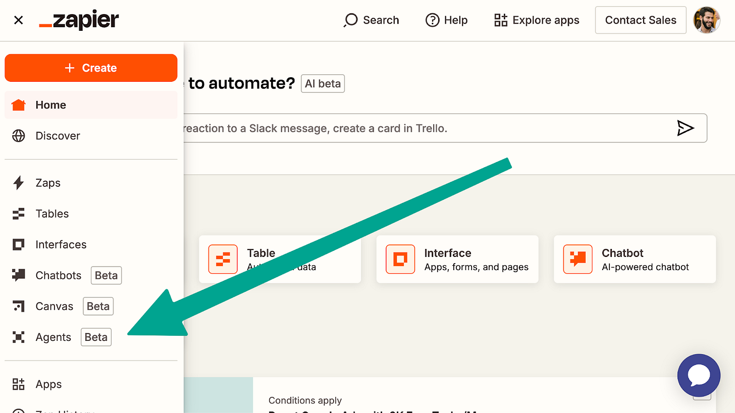 1. Create a Zapier account and navigate to “Zapier Agents.”