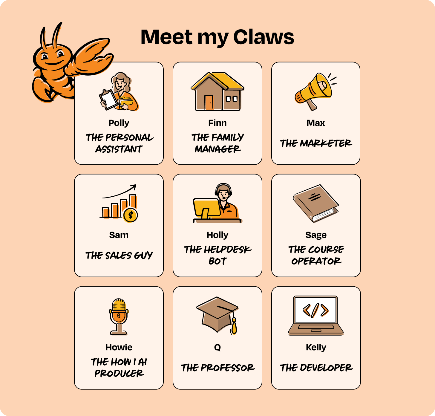 Beyond my own personal productivity, it’s the first agentic product I’ve tried that feels like hiring a team. Though I’ve been thinking about the future of agent employees for a while, OpenClaw has made the mechanisms by which we’ll “hire,” onboard, and collaborate with agents much more concrete. I can see the future, and it looks a lot like humans working with Claws.