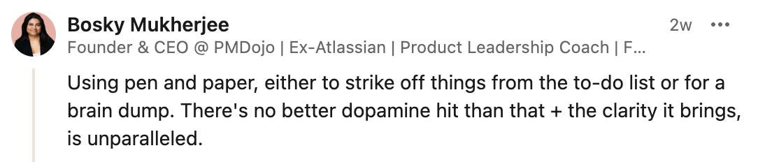 Something I’ve learned about myself is that if my to-dos are sitting inside an app on my laptop, the one place I don’t want to look is that app on my laptop. There’s hard work to do there! Let’s check my email and Slack channels for the thousandth time instead.