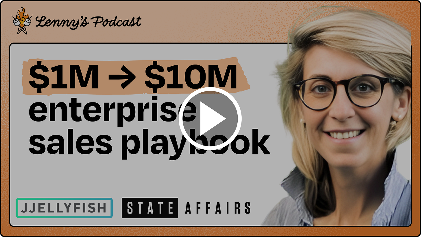 Jen Abel is GM of Enterprise at State Affairs and co-founded Jellyfish, a consultancy that helps founders learn zero-to-one enterprise sales. She’s one of the smartest people I’ve ever met on learning enterprise sales, and in this follow-up to our first chat two years ago (covering the zero to $1 million ARR founder-led sales phase), we focus on the skills founders need to learn to go from $1M to $10M ARR.
